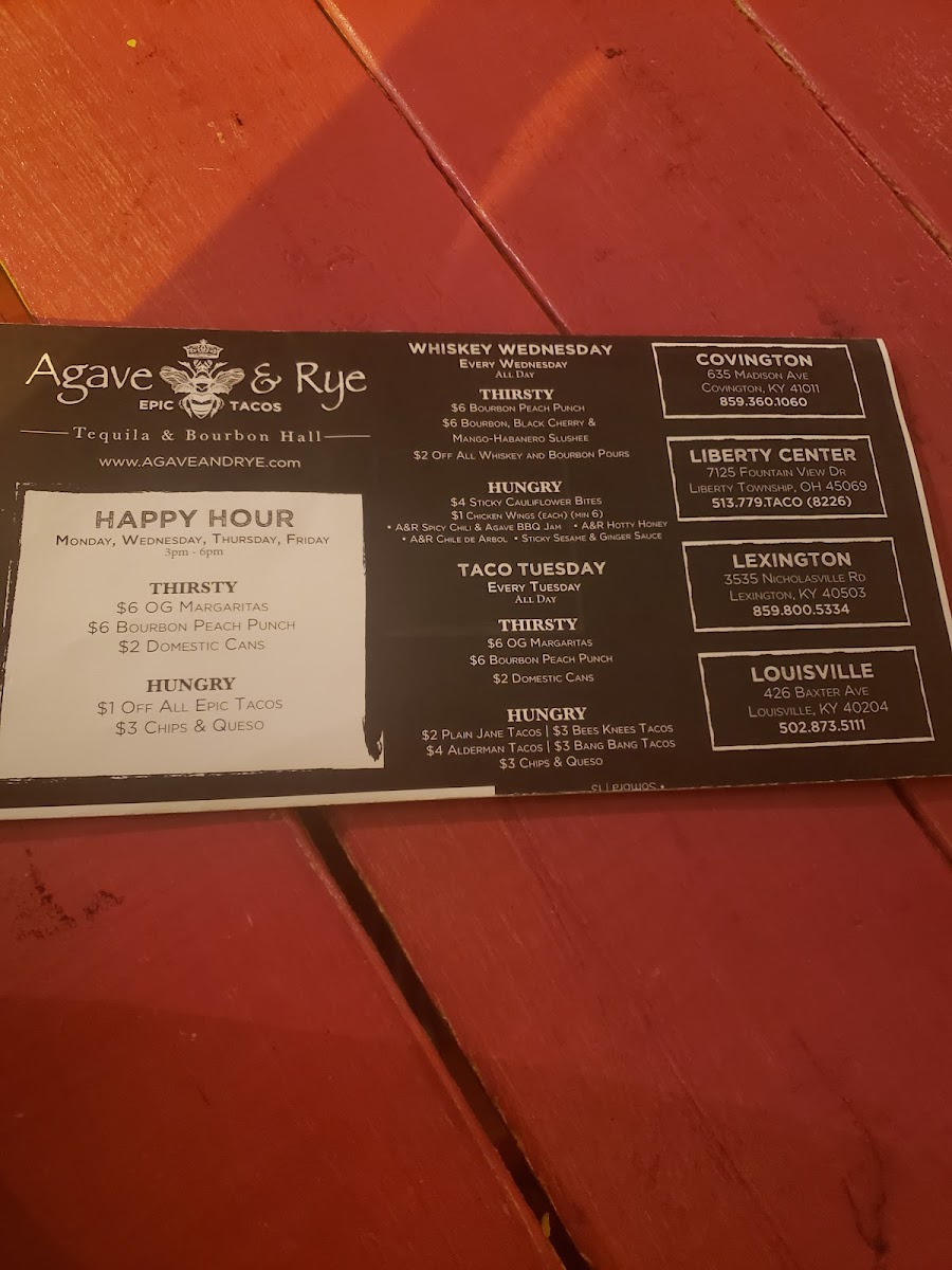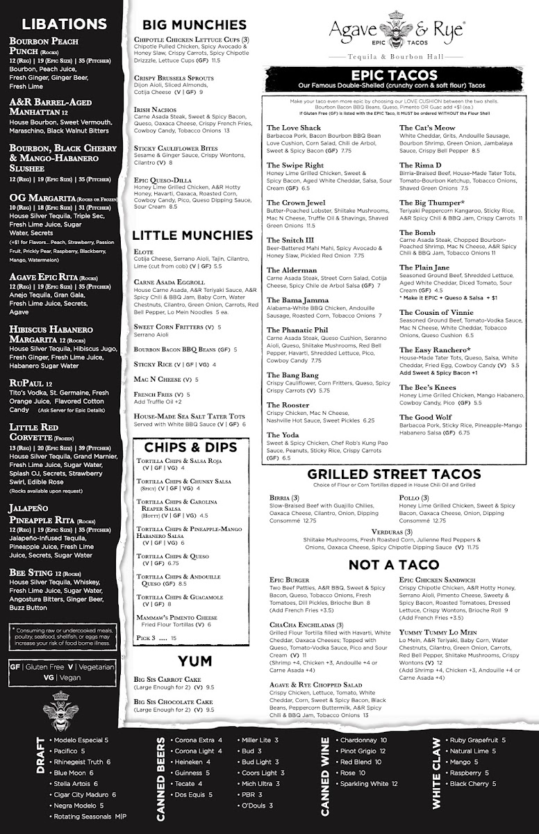 Welcome to Agave & Rye Covington, a vibrant dining destination located at 635 Madison Ave, Covington, KY. Known for its lively atmosphere, this restaurant offers an enticing menu that expertly blends bold flavors and fresh ingredients. Highlights include the Seoul Sizzler, featuring gojuchang glazed shrimp paired with crunchy Thai slaw and egg fried rice, and the Mojo Daddy, showcasing mojo marinated flank steak with a unique turmeric chimichurri.