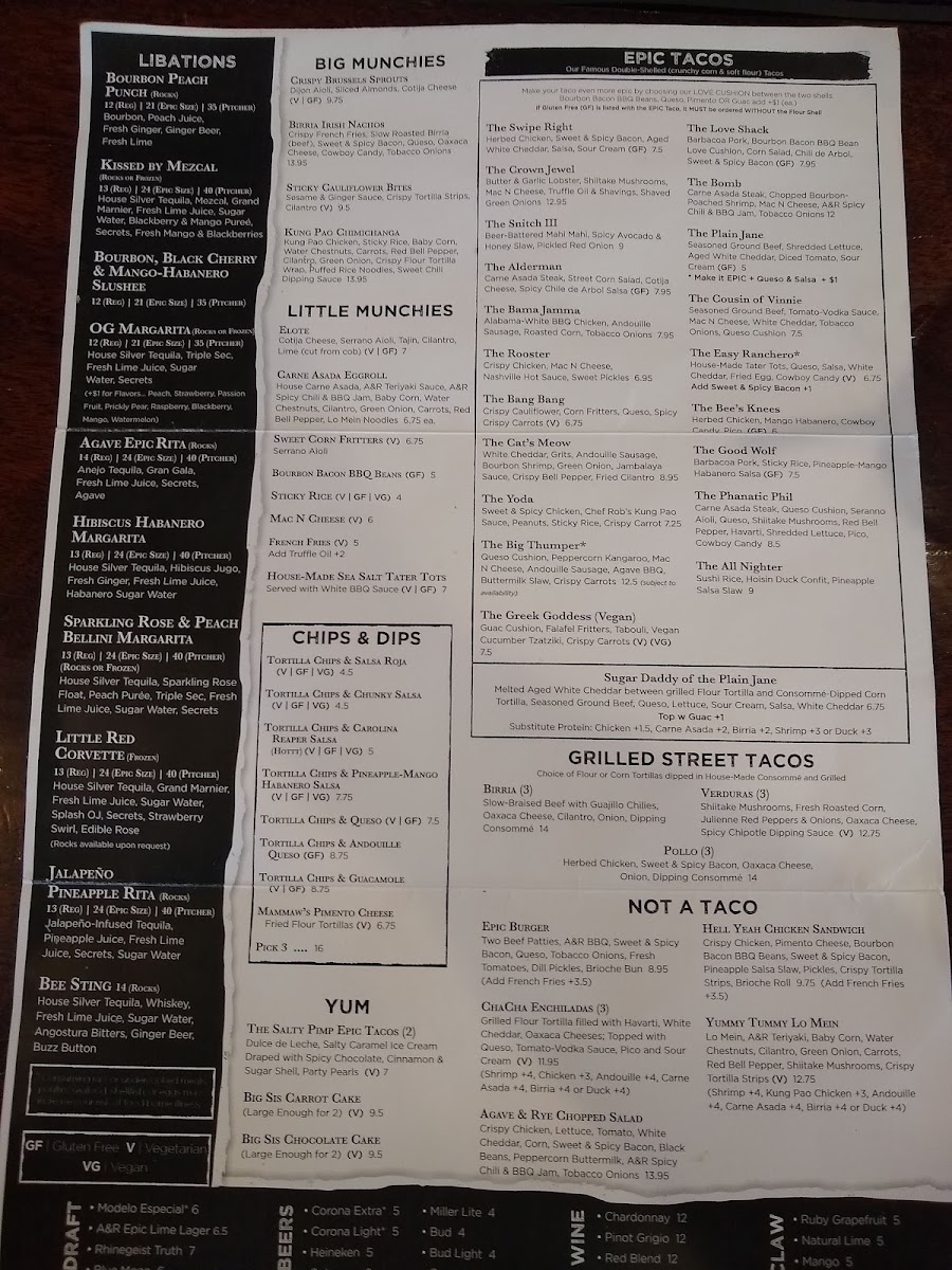 For lighter fare, the Jacked Up BBQ Plant Powered Jackfruit Carnitas dazzles with smoky sweet agave BBQ sauce. Don’t forget the delicious EPIC sides like Mexican Rice or the comforting Mac N Cheese.